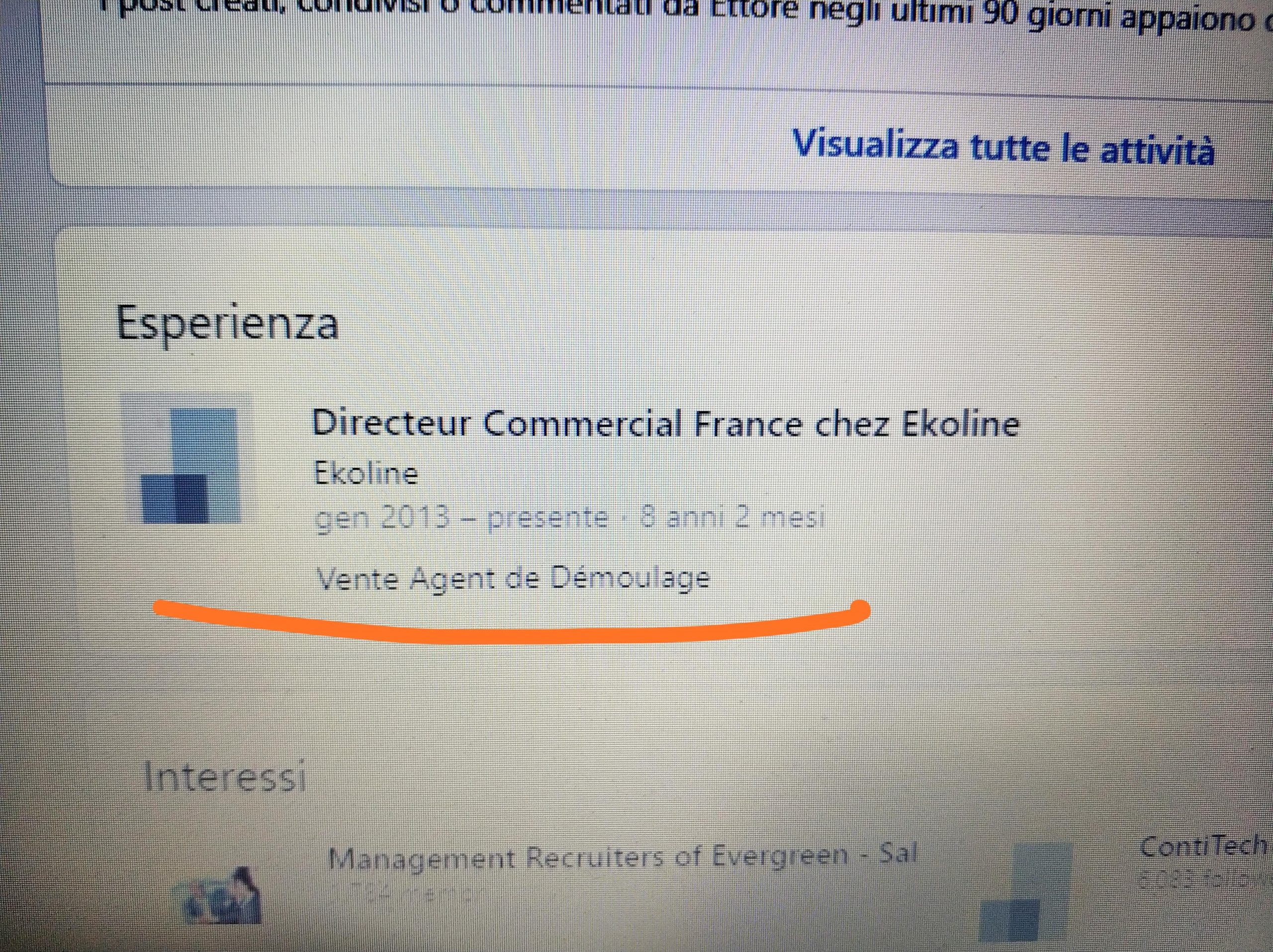è lecito pensare che su Linkedin si tratti del Direttore commerciale per la Francia della Ekoline. Management, appunto.