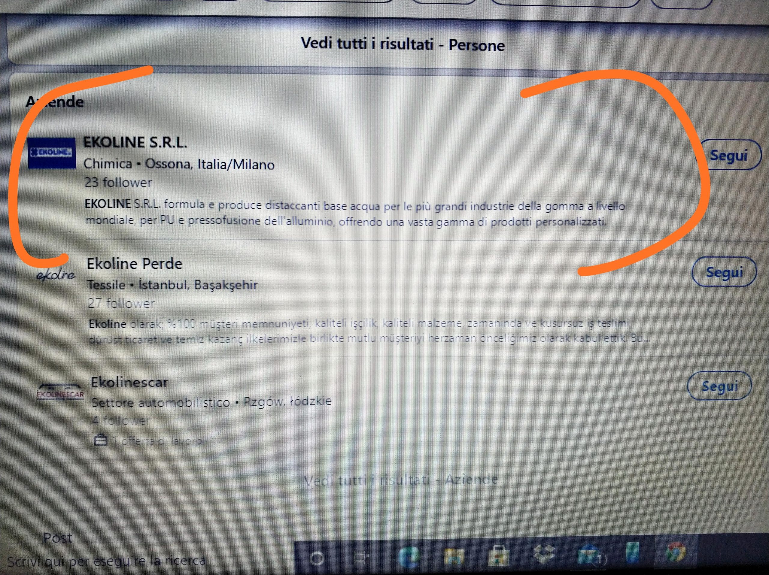 Il fatto è che, sulla pagina della Ekoline, loro di dipendenti presenti su Linkedin ne dichiarano 9: e nessuno di essi è Ettore Pasini, direttore commerciale per la Francia.