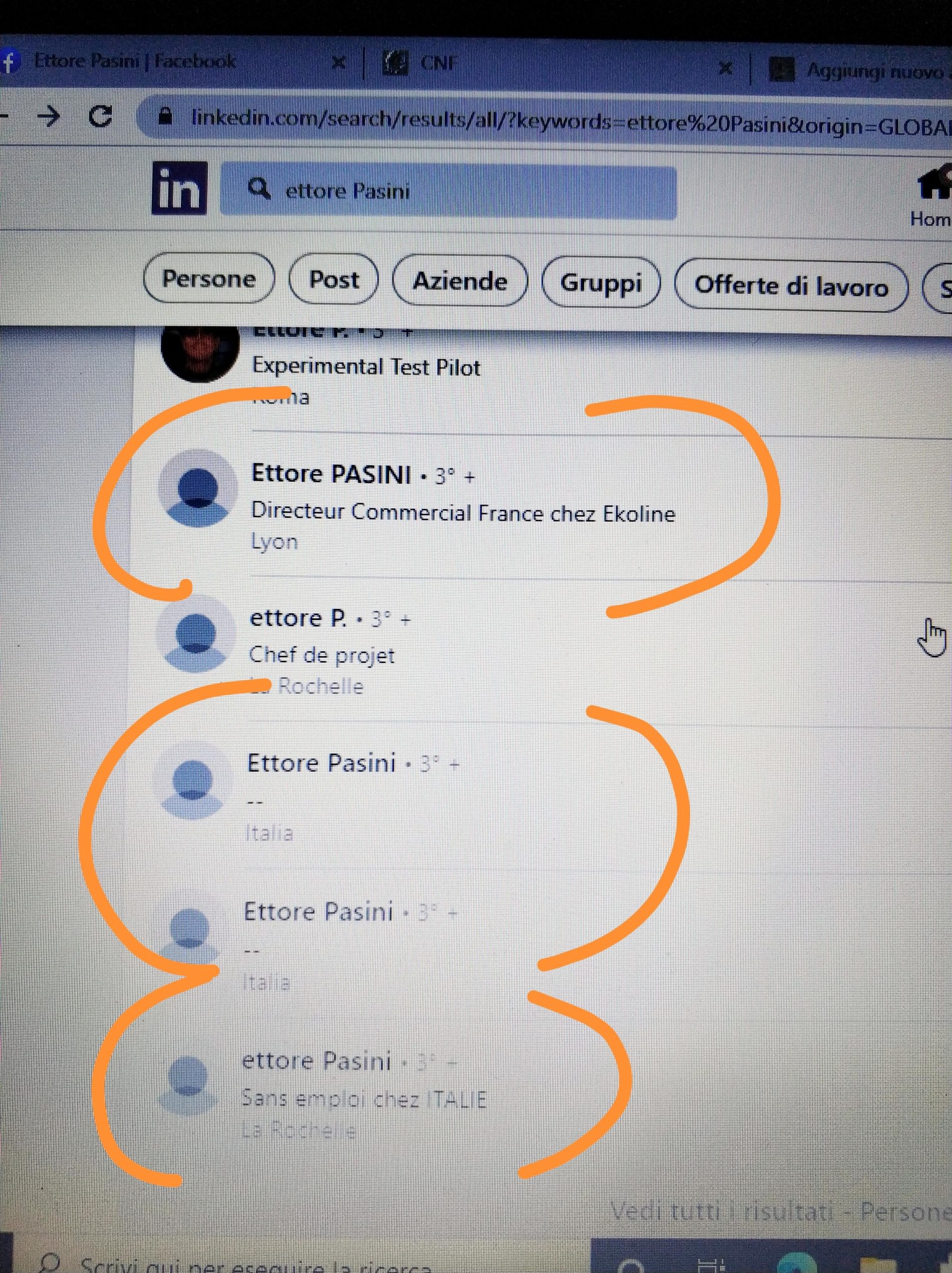 b. l’ultimo in elenco, che, sempre esprimendosi in francese, si dichiara “disoccupato in Italia
