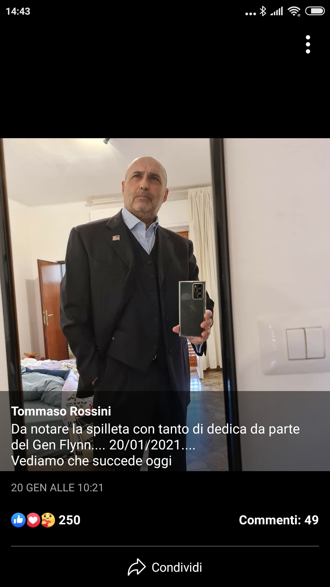 In cui, a colpirmi, non è tanto la “spilleta” del Gen Flynn, quanto il letto disfatto alle spalle, nel selfie allo specchio in camera.