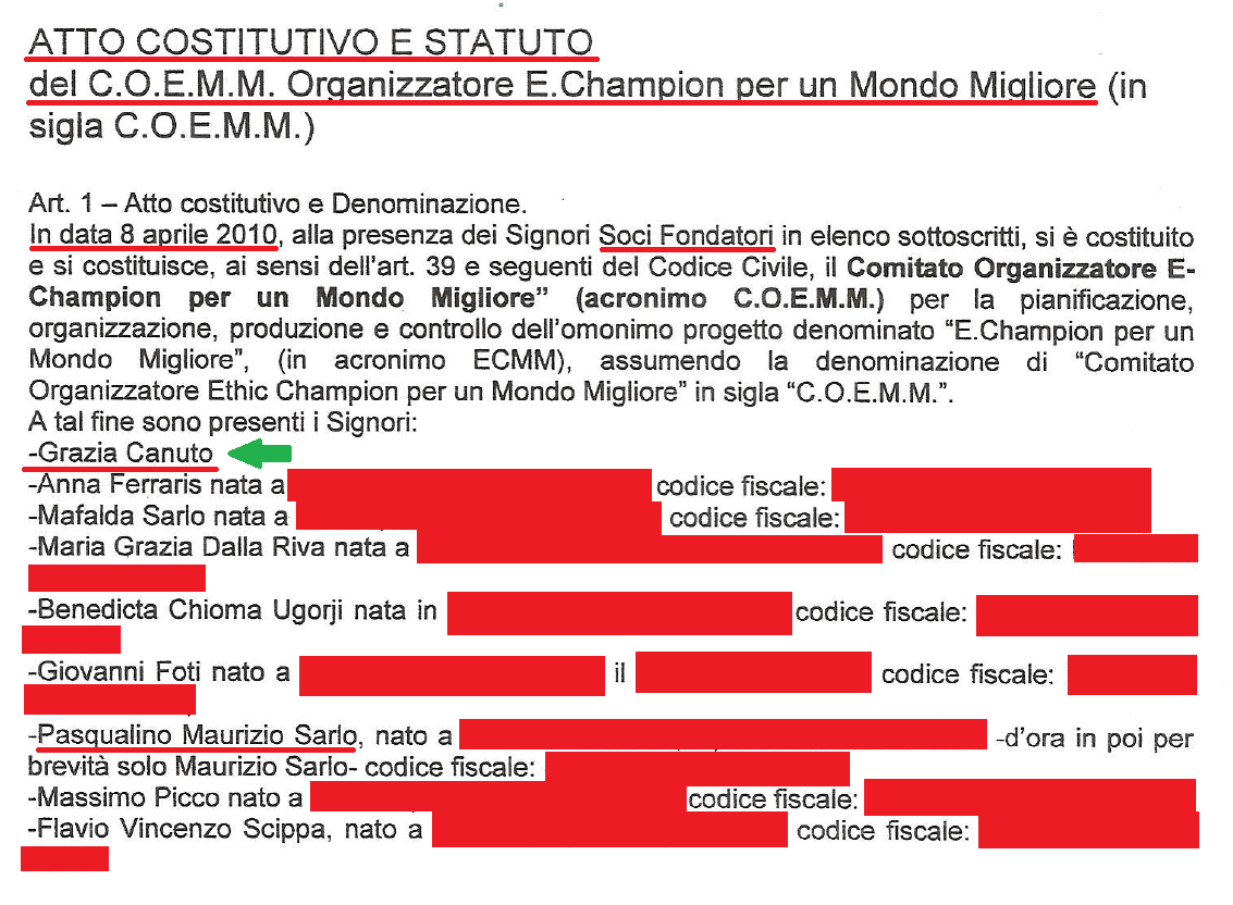 E che recentemente è rimasta coinvolta in un’inchiesta giornalistica di Fanpage, che l’ha soprannominata “la dama di mezzo“: inchiesta da cui sono emersi suoi presunti legami con la camorra e lo scandalo rifiuti in Campania. E per maggiori dettagli, su di lei e sui CAD, vi rimando a questo articolo di Paolo Cagnan sul Mattino di Padova. Ed a questa pagina FB che da tempo segue la faccenda e su cui sono riuscita a recuperare l’atto costitutivo di COEMM.