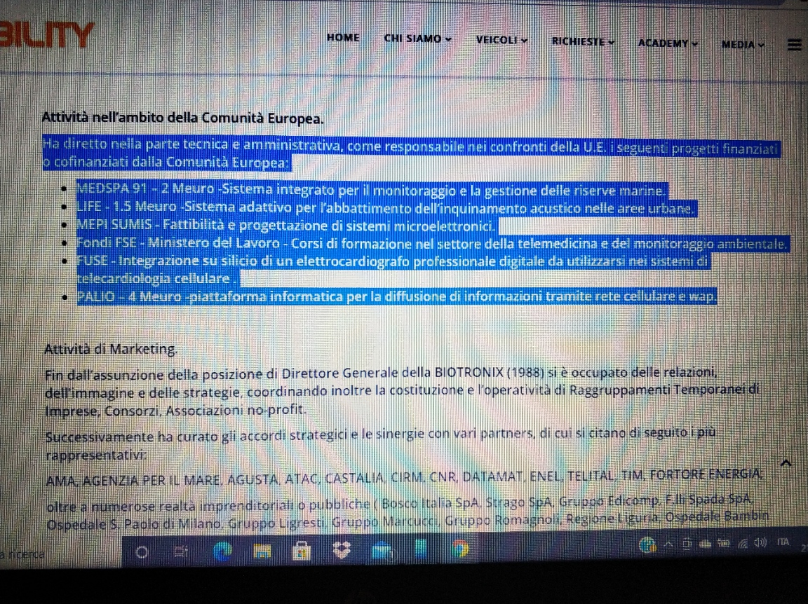In cui, fra le varie cose, afferma di essere “Autore di circa sessanta pubblicazioni presentate a congressi nazionali ed internazionali o a primarie riviste del settore” (su Linkedin dice 50). Ed io, onestamente, ci ho passato tre giorni buoni a cercarle, ste pubblicazioni: tante così non dovrebbe essere difficile, anche se non sono del campo, mi sono detta.