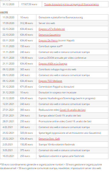 Ora, considerando che… la lauta donazione di 10 euro al sito che ha ospitato la raccolta fondi, e sono già stati pagati il server, il logo, i volantini, lo “staff”, la licenza Zoom etc etc (si potrebbero avere anche le fatture, di tutto ciò, sempre in nome della trasparenza?), mi posso permettere di suggerire al sig. Gracis altre cause più redditizie, di cui pare non essersi accorto, in cui investire i circa 10mila euro che avanzano?