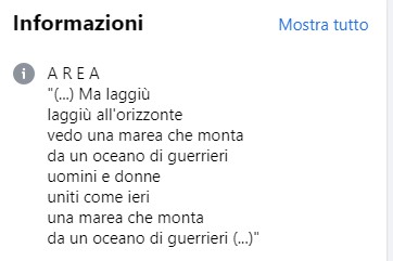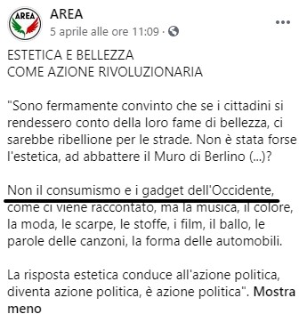 È nata da poco (il 17 marzo) una nuova organizzazione politica, con relativa pagina Fb di 3mila follower: si chiama AREA.