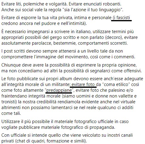 Ed infine, ditemi un po’, sto manifesto che ho trovato sulle “norme comportamentali” del militante: