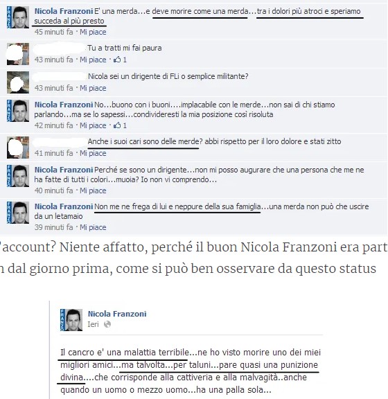 È vergognoso augurare la morte con tanta violenza, gioire del cancro dell’avversario politico.