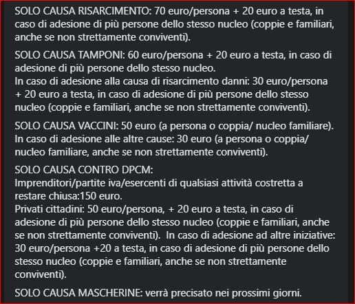 Di Sandri ho già pubblicato il tariffario, ma lo ripubblico, tanto per capirci: cause a 70 euro a persona. Ma possiamo anche fare 30 eh. Più che un tariffario di un avvocato pare una svendita di fine stagione dai cinesi sotto casa.