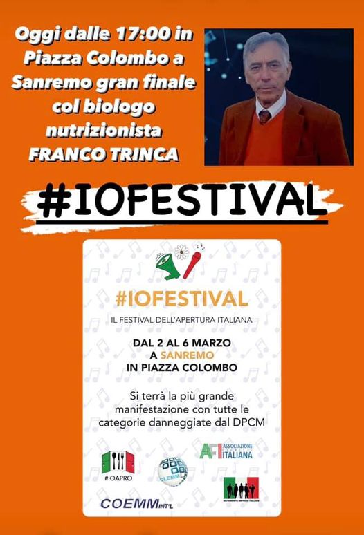 Oltre che nelle piazze insieme all’avv. Sandri? Quello che con 50 euro ti fa una causa per i tamponi contro la dittatura sanitaria e tutela la Rosanna Spatari, la quale a sua volta se ne frega delle norme di sicurezza ed organizza gli aperitivi senza mascherina e senza scontrino?