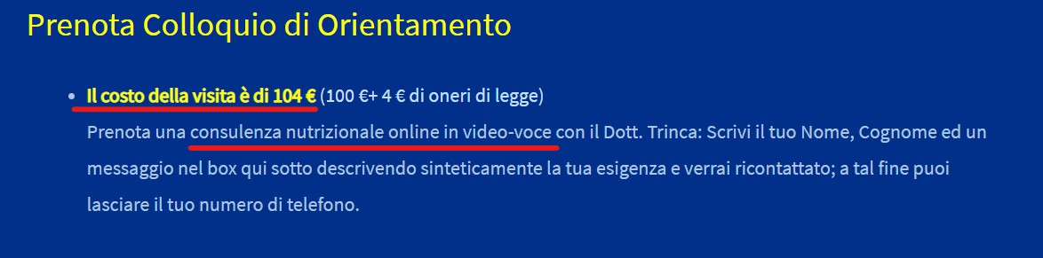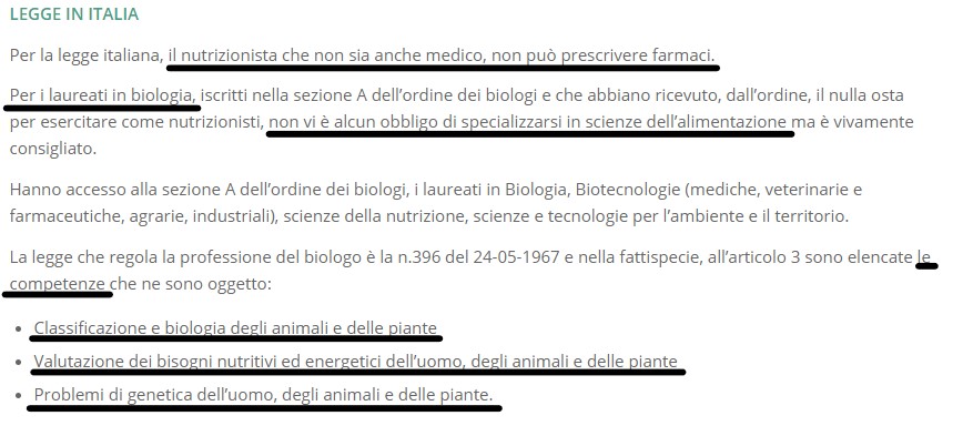Insomma il dott. Trinca è solo un biologo: non un virologo, non un epidemiologo, non un medico. Che esercita come “medico” nutrizionista perchè la legge glielo consente.