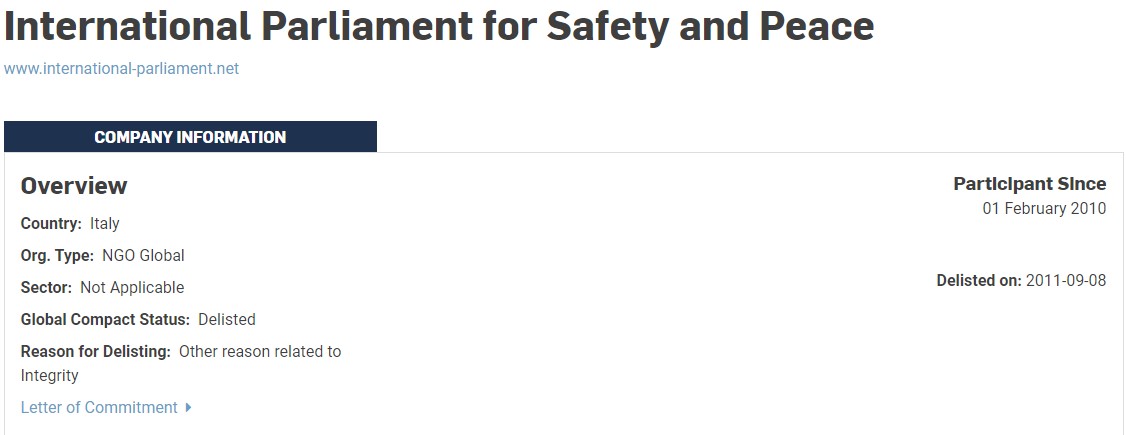 Oddio, non è riuscito a convincere proprio tutti: ad esempio l’ONU (l’ultimo arrivato insomma, quisquilie) non ne ha voluto sapere. Sentenziava infatti nel 2011 che il “Parlamento Mondiale per la Sicurezza e la Pace” non poteva far parte dell’organizzazione per problemi relativi alla sua “integrità” (di cui parleremo in dettaglio più avanti).