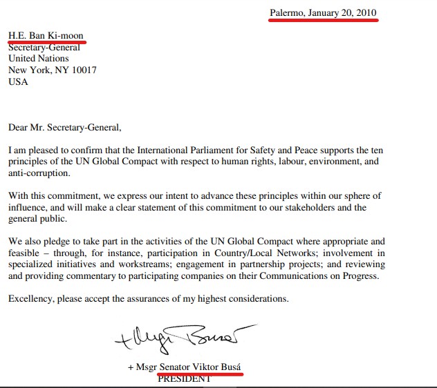 E questo nonostante l’altisonante lettera, redatta in aulico inglese, con cui Sua Eminenza, nonchè Presidente di bla bla bla, comunicava a Ban Ki-moon di averlo graziosamente preso in considerazione come partner nella difesa della pace nel mondo. Anzi no: nella lettera il reverendissimo si firmava solo come senatore.