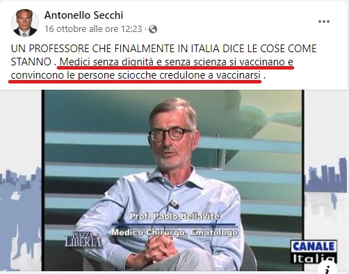 Ed evidentemente la sfiducia nei confronti della medicina ufficiale deve essere piuttosto diffusa, fra i membri del Parlamento Mondiale, viste le posizioni apertamente antivacciniste dell’avv. Secchi.