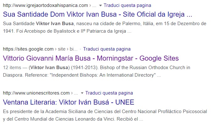 Se infatti si digita il nome di Viktor Ivan Busa si scopriranno una marea di link, sparsi per tutto il globo, e tutti quanti che confermano ed avvalorano la posizione di Sua Eminenza. E non solo quella di Sua Eminenza, ma anche quella di altri innumerevoli alti prelati.
