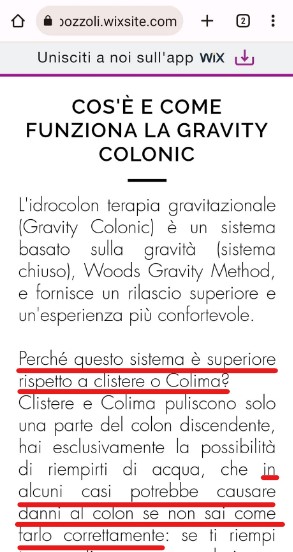 Come spiega la stessa psicologa nel suo sito (sito opportunamente criptato da password da richiedere a lei in privato: cosa avrà mai da nascondere?!), la Gravity colon è molto più di un semplice clistere.