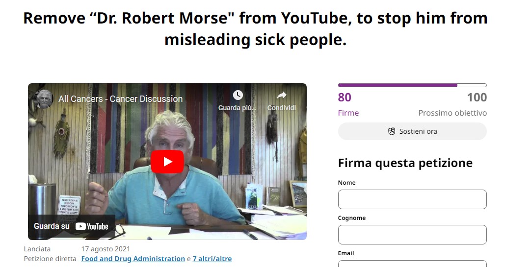 Come saprà anche benissimo che nel 2021 è stata aperta una petizione contro di lui su Change.org, per chiedere alla Food & Drug Administration di fermarlo.
