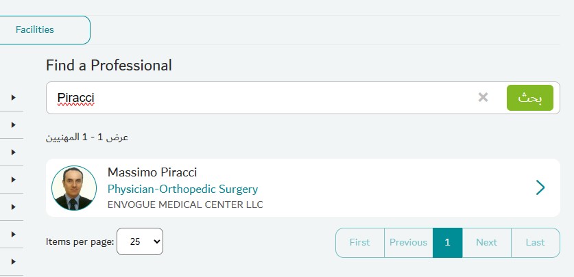 L’ho cercato quindi su sto sito del Dubai Medical Registry, dove ci sono tutti i titolari di licenza medica di Dubai.