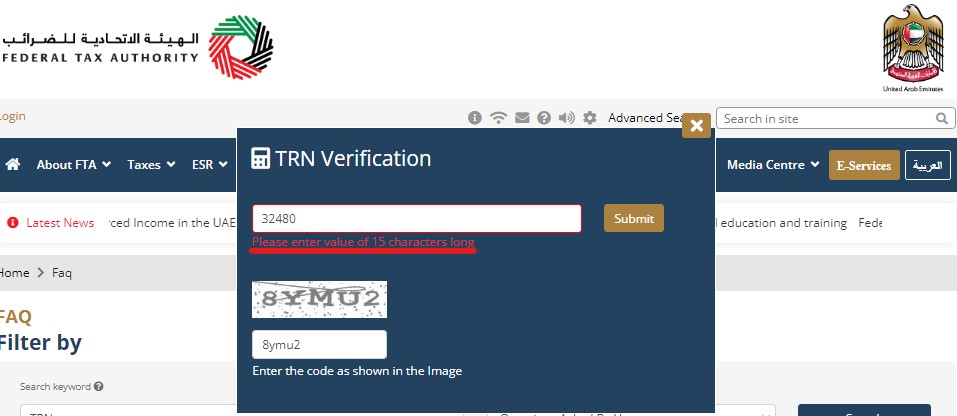 E quindi sono andata a cercare il sito della Federal Tax Authority degli UAE, vale a dire tipo la nostra Agenzia delle Entrate: nel quale, esattamente come sul sito della nostra Agenzia delle Entrate, si può verificare l’esistenza di una Partita IVA, un codice fiscale ecc ecc.