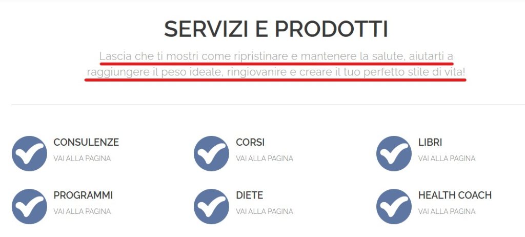 Se si scorre il sito della sig.na Kwasniewicz si trova in bella mostra la sezione “Servizi e prodotti”.
