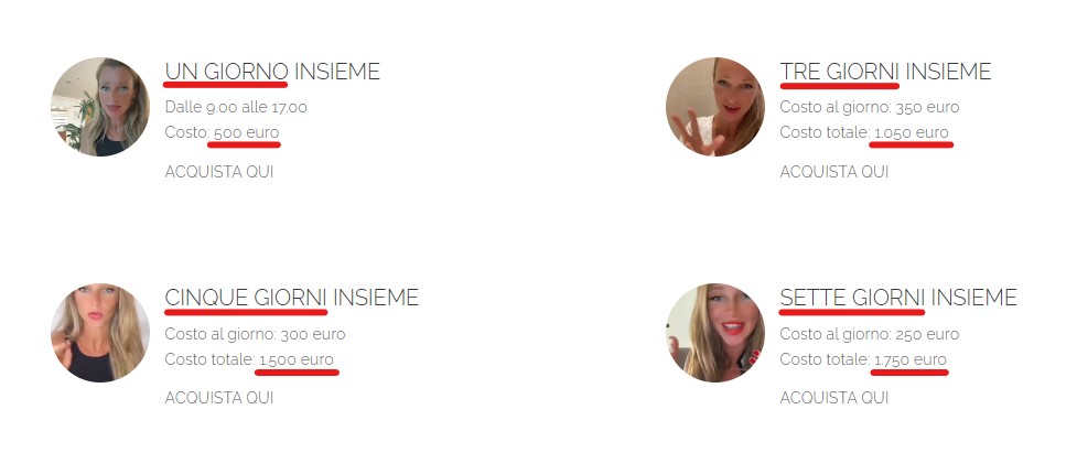 Lo ammetto, fa un po’ escort sto tariffario : vitto e alloggio esclusi eh, ci tiene a precisarlo. Le devi pagare anche quelli.