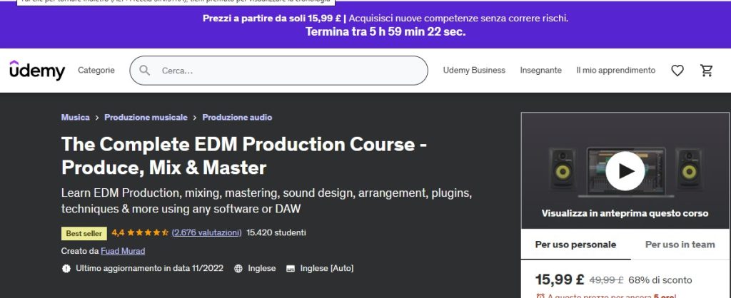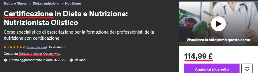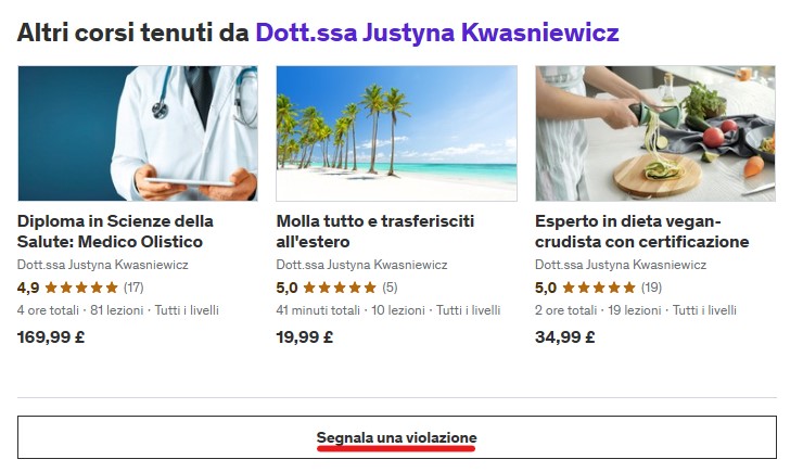 Ma il vertice si tocca su Udemy: è lì che la nostra intraprendente fuffara vende i suoi “corsi”.
