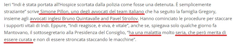 E sorvolo sull’incipit dell’articolo “Volge al termine la vicenda di Indi Gregory, la bambina gravemente disabile, che i medici e poi i giudici, andando contro la volontà dei genitori, hanno deciso di non curare più, perché è oscenamente manipolatorio, in modo colpevole e deliberato.