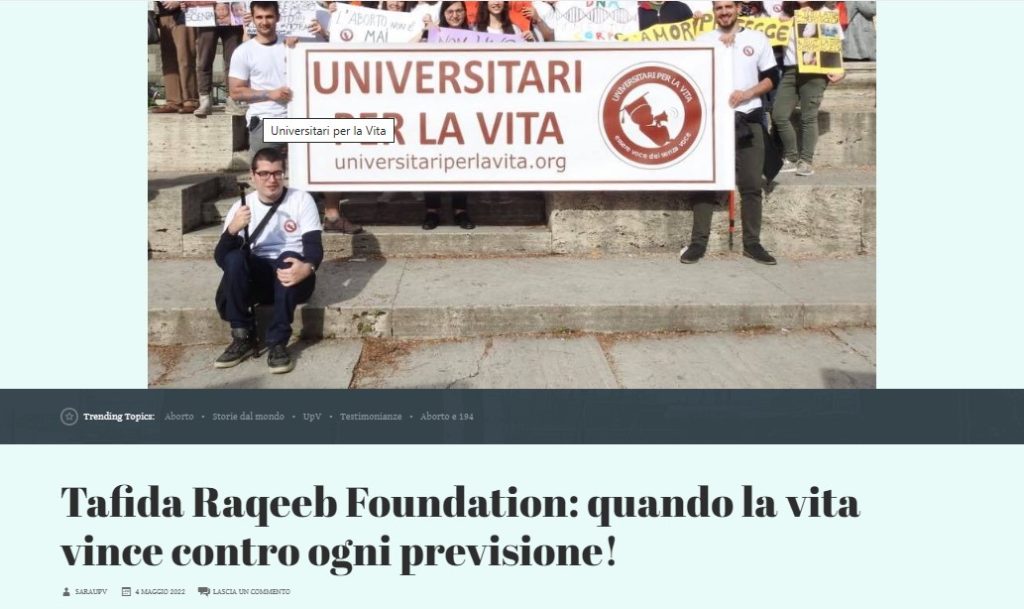 Lui è il vicepresidente della “Tafida Raqeeb Foundation“, lanciata nel 2022, come testimonia questo articolo di Universitari per la Vita