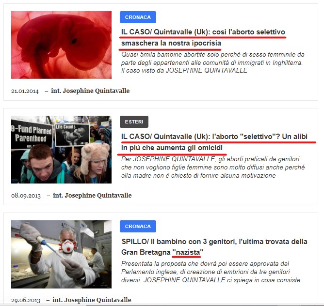 Questa ad esempio è un’intervista del 2015 che le è stata fatta da La Nuova Bussola Quotidiana, giornale di chiara estrazione cattolica.