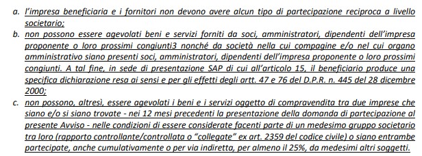 a. l’impresa beneficiaria e i fornitori non devono avere alcun tipo di partecipazione reciproca a livello