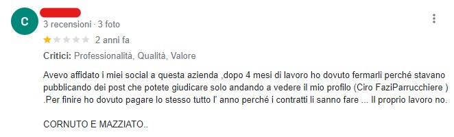Che voglio dire… Benedetto il Signore… Io capisco crederci sempre e non mollare mai: ma se ti presenti come un “polo di accentramento tecnologico multi activities in ambito Digital“, capitanato da Insem, “Tech Agency con un focus specifico su E-commerce e Digital marketing“, e poi mi tiri su 26 cristiani su Instagram e 7 su Facebook, a me il dubbio che le recensioni negative avessero un loro perché sorge.